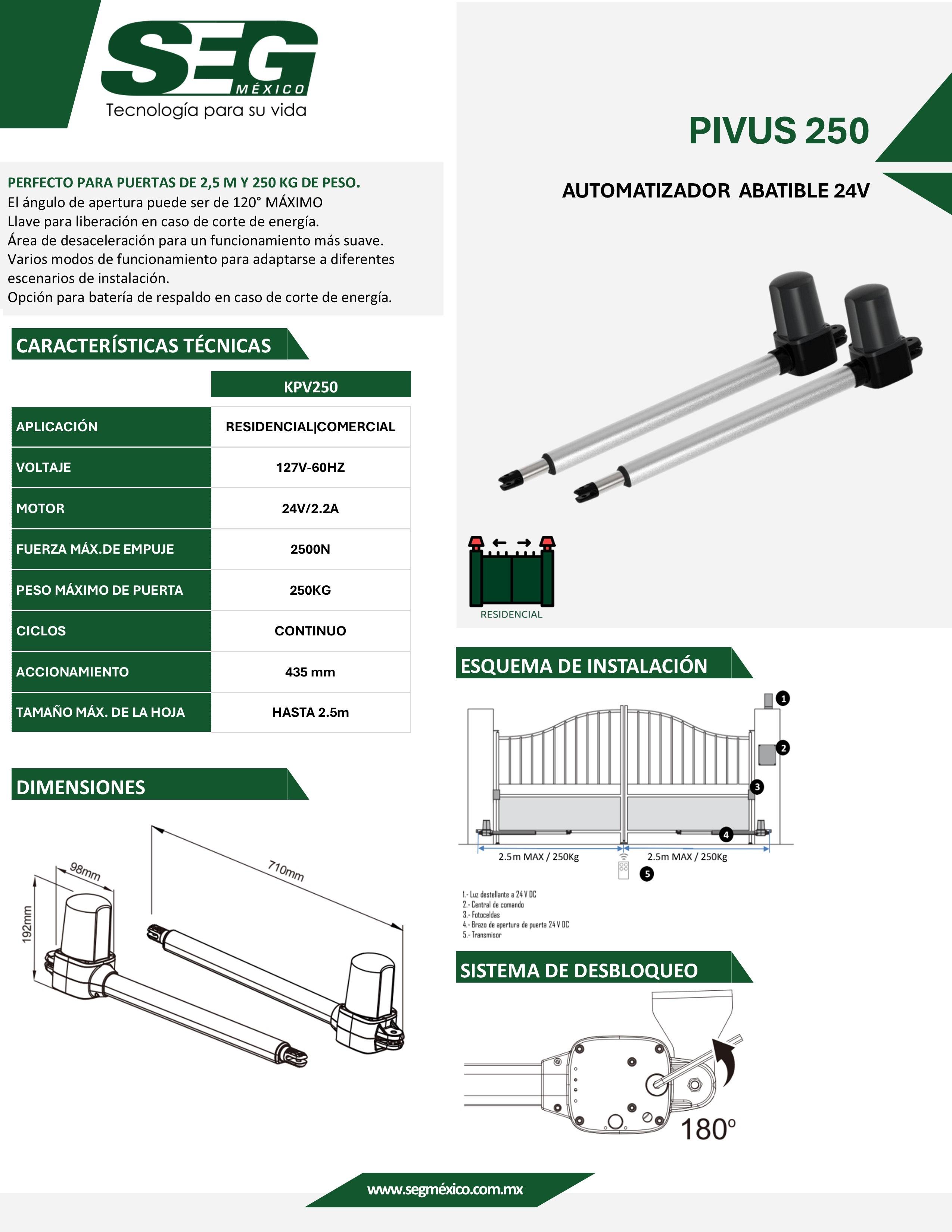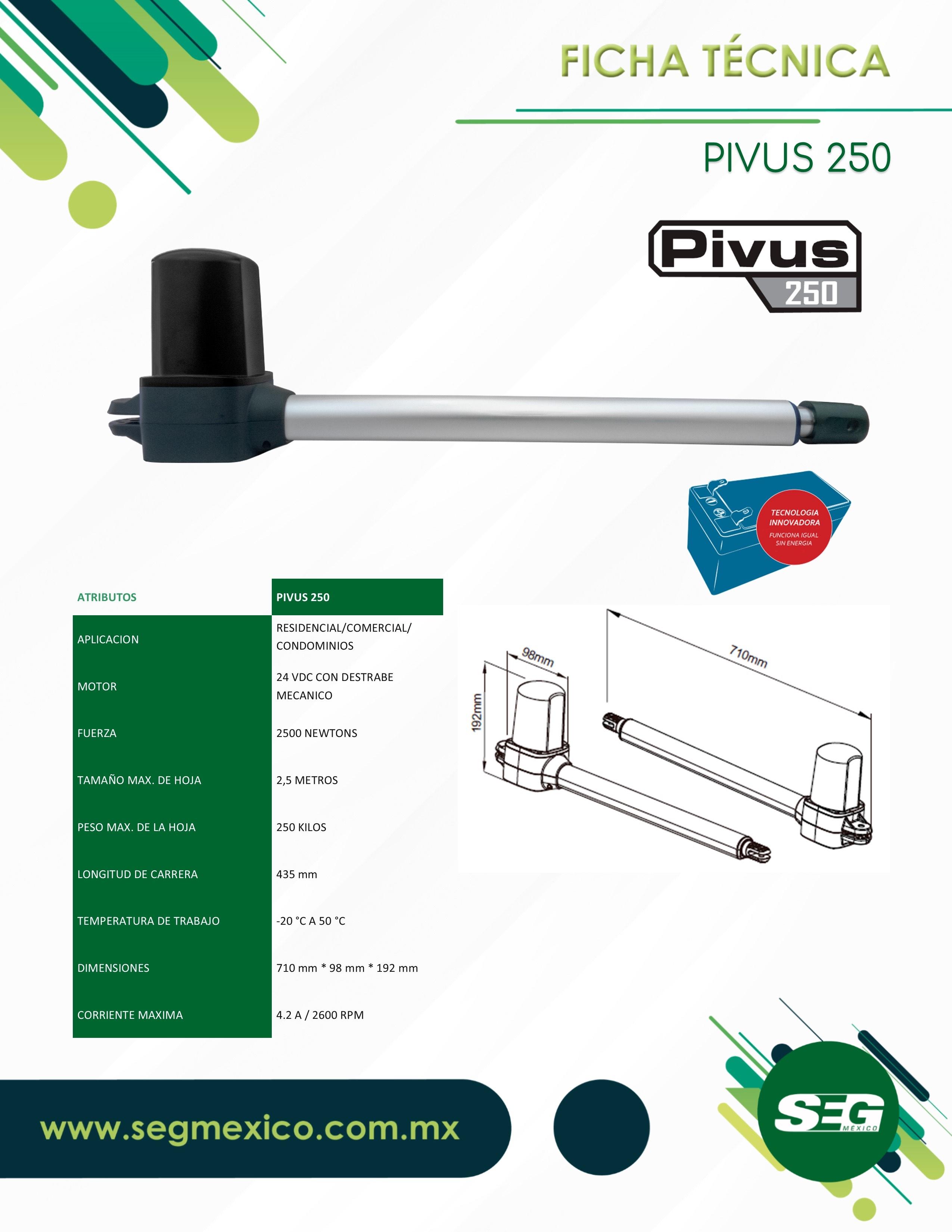 OPERADOR PIVUS 250 PARA HOJAS DE HASTA 2.50 MTS DE ANCHO CON UN PESO DE HASTA 250 KGS POR HOJA.