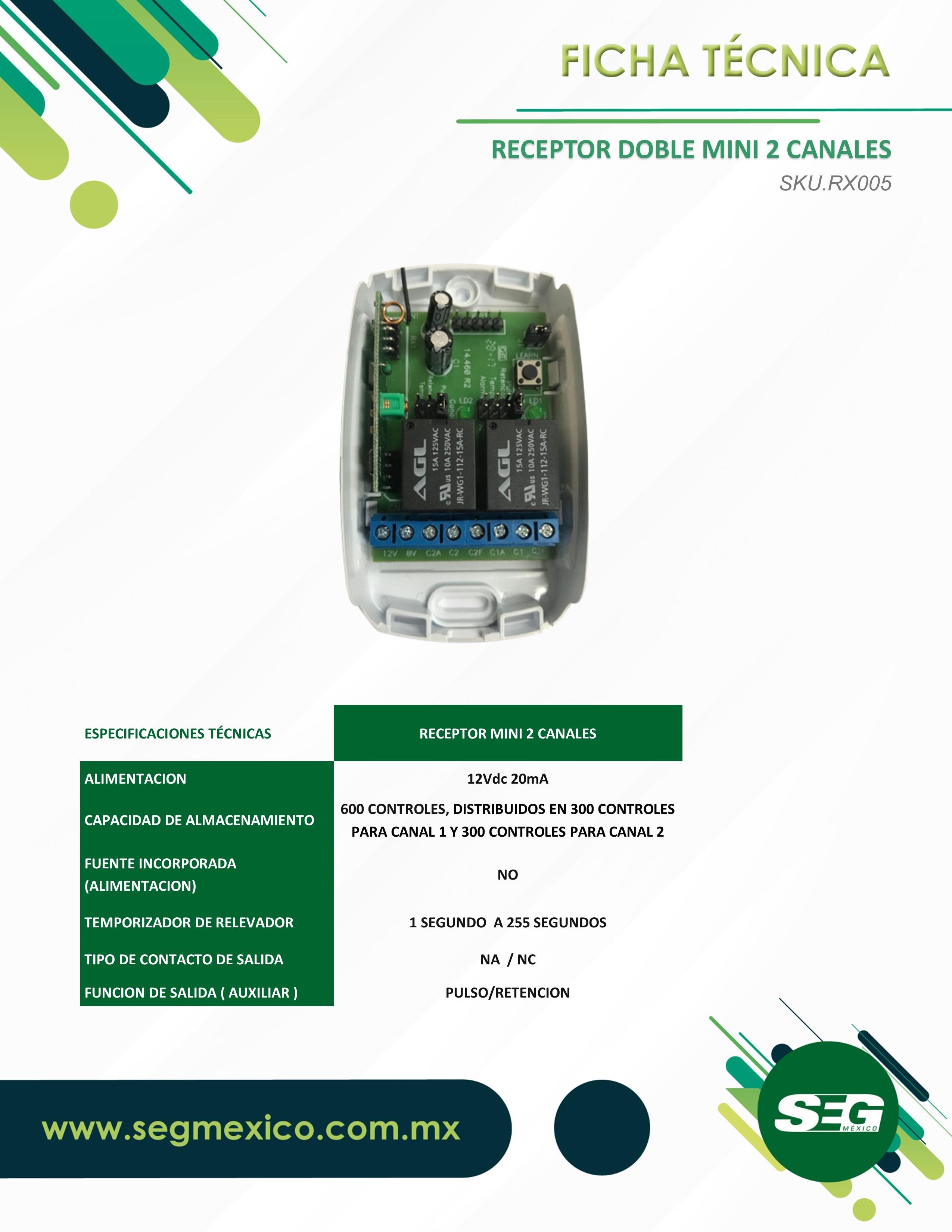 RECEPTOR SEG DOBLE CANAL 433MHZ.