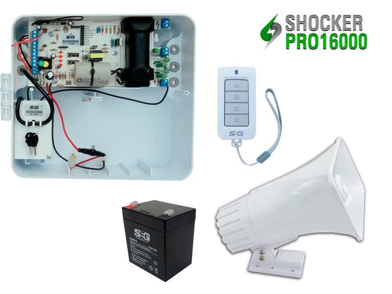 ENERGIZADOR SHOCKER PRO CON LLAVE Y CONTROL SIRENA DE 30W Y BATERIA.