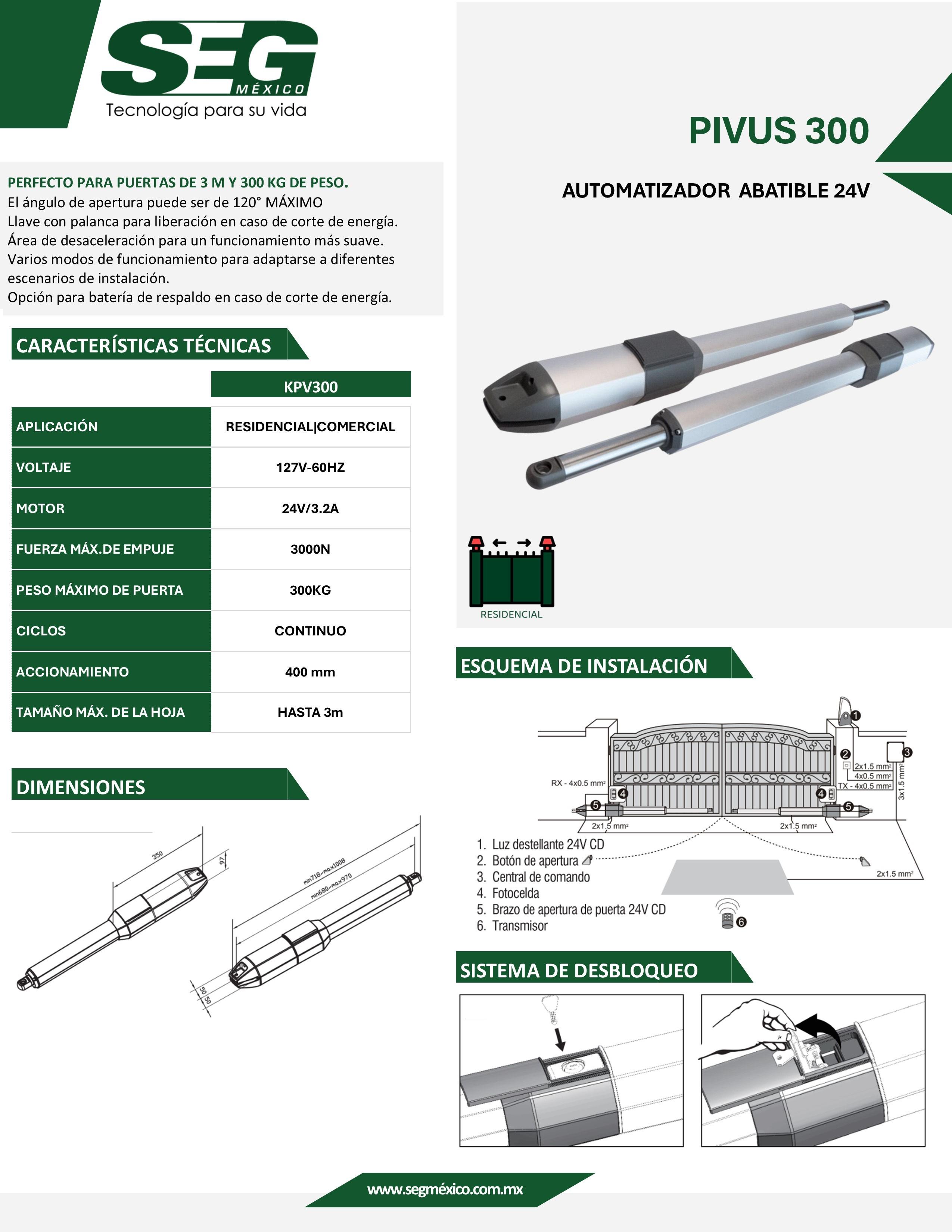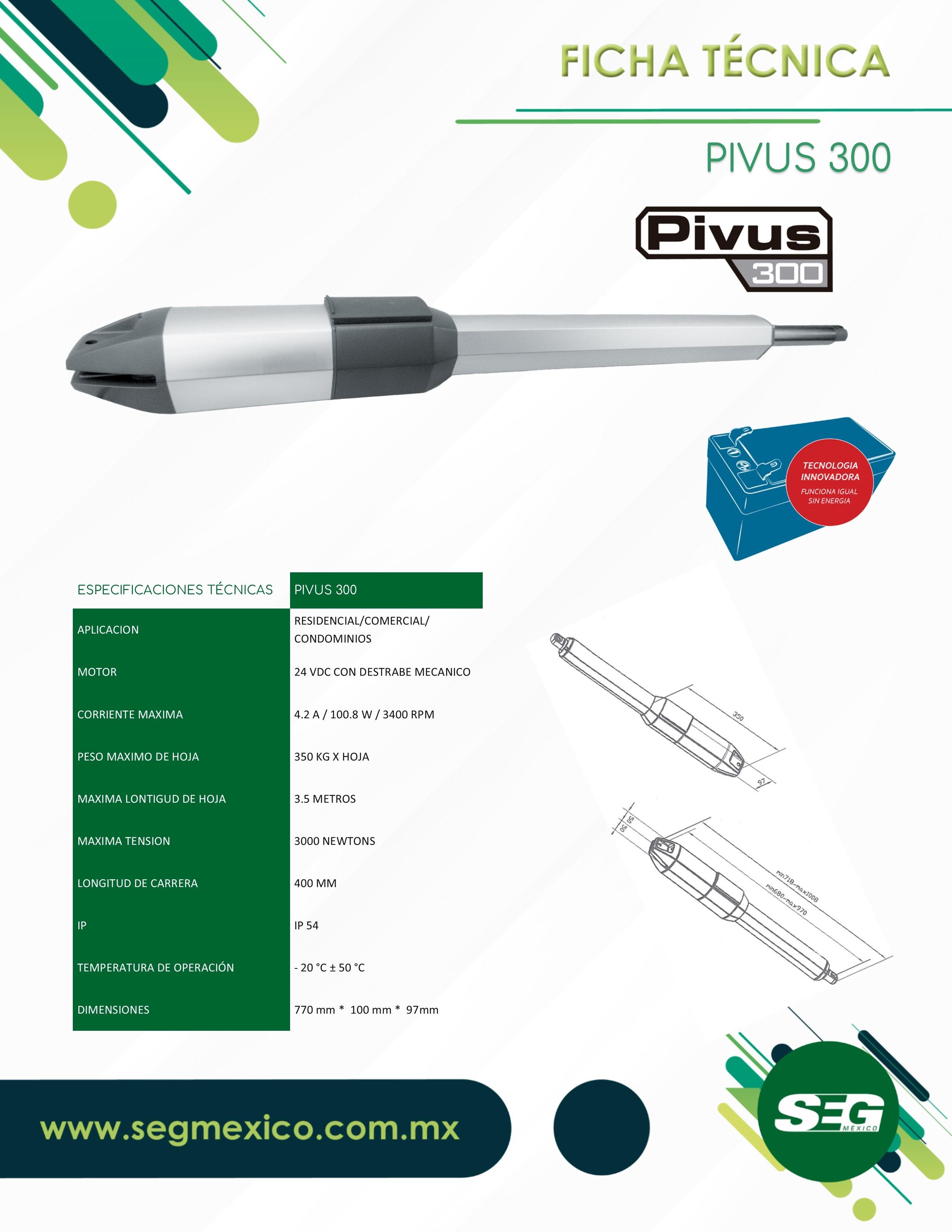OPERADOR PIVUS 300 PARA HOJAS DE HASTA 3.0 MTS DE ANCHO CON UN PESO DE HASTA 300 KGS POR HOJA.