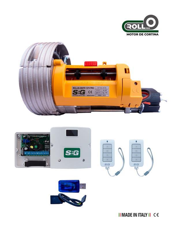 Kit operador de cortina seg 180kg con freno roll con central sencilla para operador de cortina, 2 radio transmisores TX Play y WIFI.