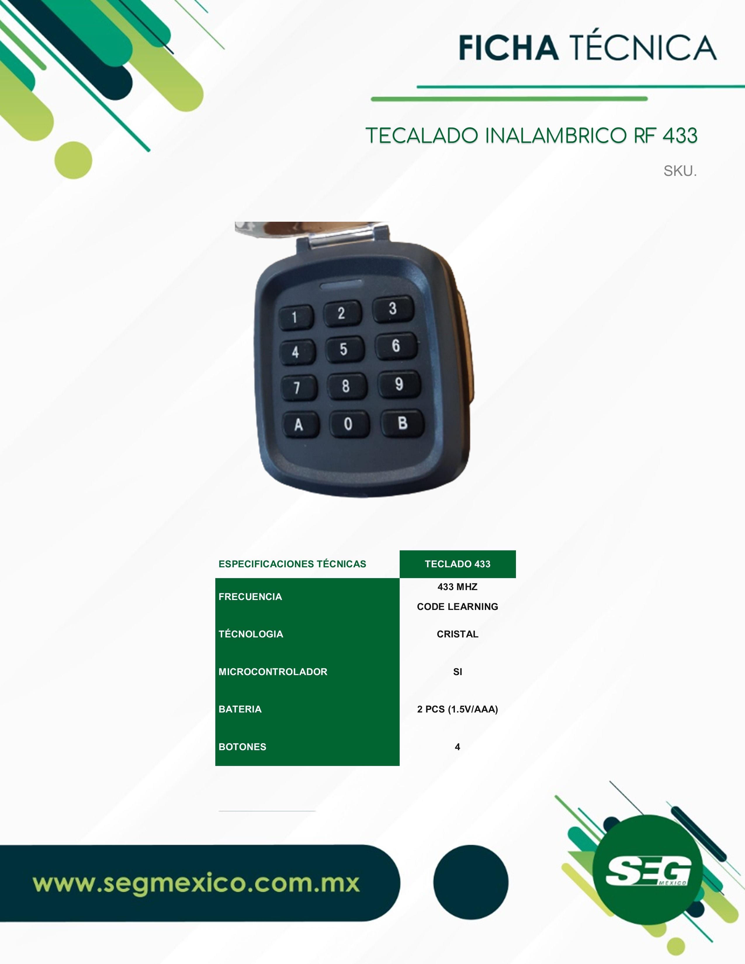 TECLADO INALÁMBRICO RF 433MHZ PARA OPERADORES SEG.